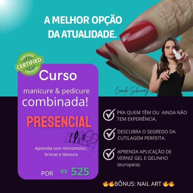 Comandado por uma manicure profissional com vasta experiência e utilizando um celular de alta qualidade para transmissão via Zoom ou Google Meet, o curso proporciona instruções detalhadas para um acabamento perfeito e de alta durabilidade.